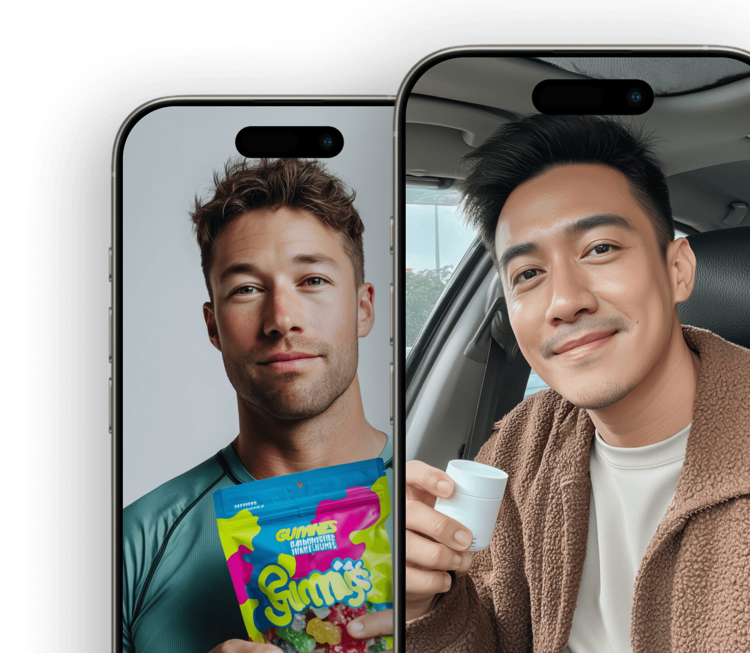 Choose from real creators licensable AI Twins to create UGC-style video ads holding and promoting your products in seconds.