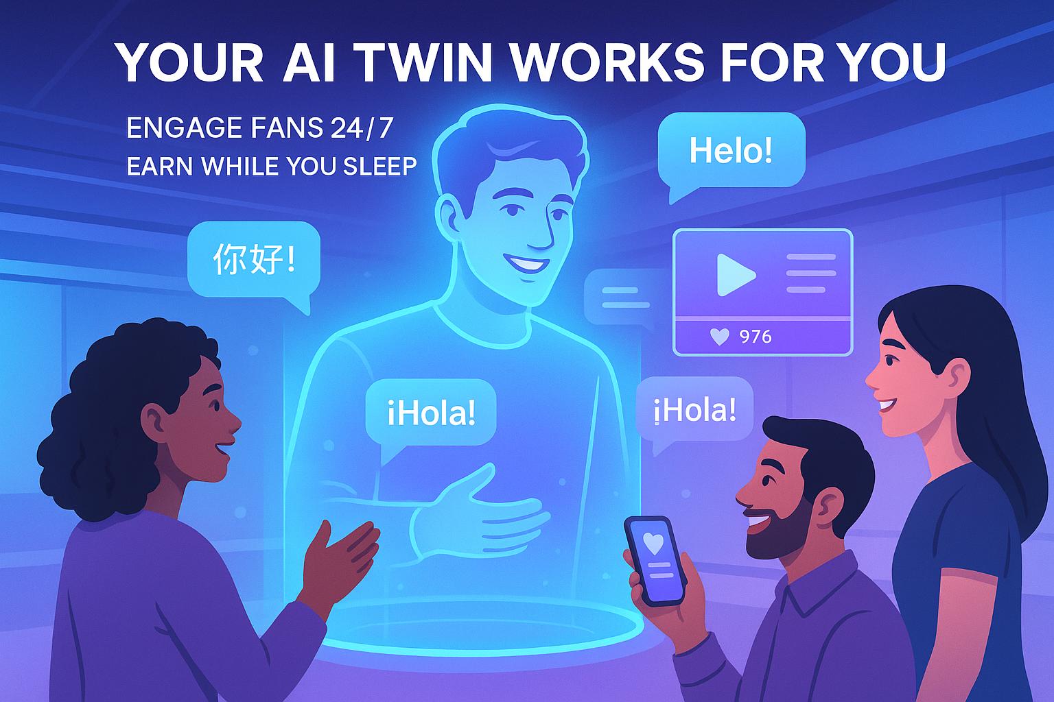 Platforms like TwinTone take it further, offering AI digital twins that engage fans 24/7, support 30+ languages, and provide detailed analytics - all for $99/month, with creators keeping 100% of their earnings.